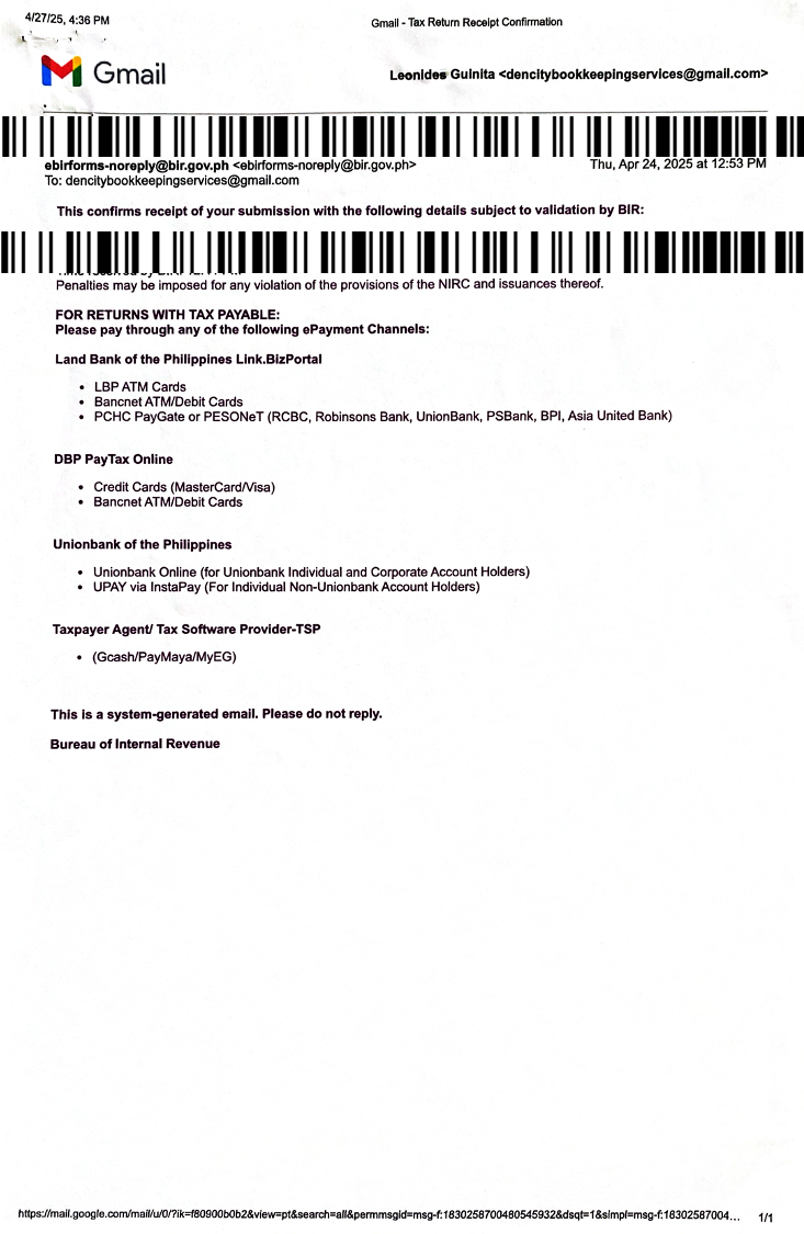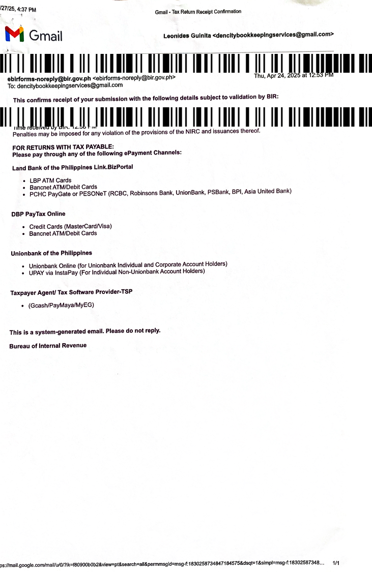 We offer year-end Audit of Financial Statements including BIR Form 1701-Annual Income Tax Return, BIR Form 1709-Information Return on Transactions with Related Party and eAFS submission.